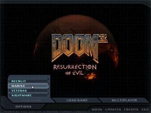 Doom 3: Resurrection of Evil is a First Person Shooter released in April of 2005 by Nerve Software for the PC. RoE is an expansion on the original Doom 3. The series began with Doom and Doom II.