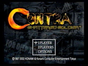Contra: Shattered Soldier is a scrolling Shooter released in October of 2002 by Konami for the Playstation 2. The series originated with Contra and includes many titles.